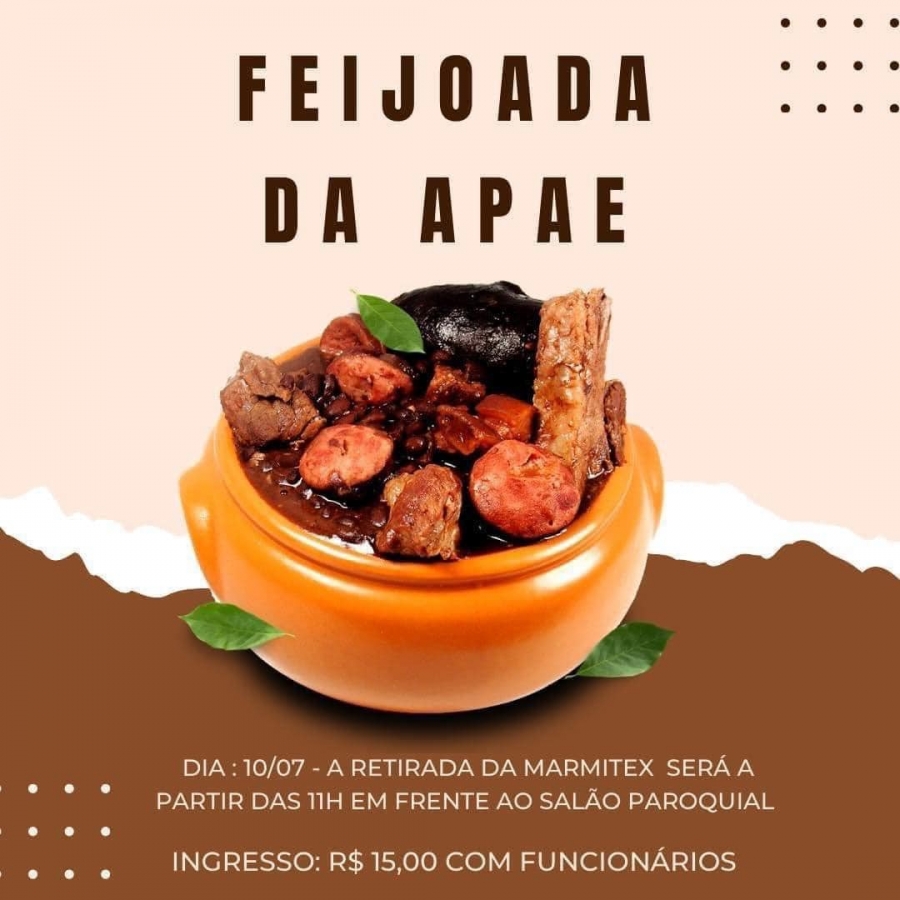 Você não vai deixar de comer uma deliciosa feijoada e ainda ajudar a APAE.